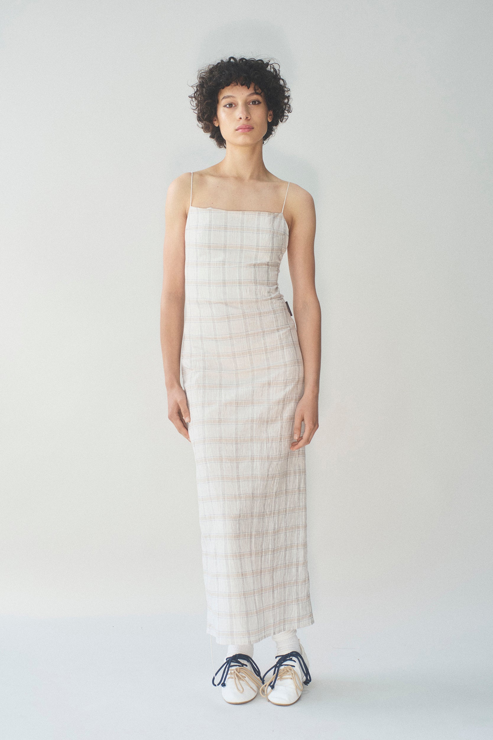 Cowlneck dress with adjustable strap on the right side to create a desired fit.